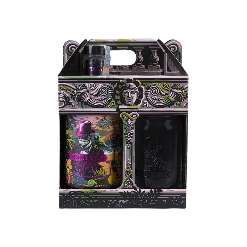 Das Flaschenetikett ist ein Kunstwerk für sich - handgemalt von einem jungen Künstler, inspiriert von einem Sonnenuntergang an der jamaikanischen Küste. Es zeigt die imaginäre Welt des alten Bert, der sich hinter einem Zylinder versteckt. Das Design in Lila-, Rot-, Orange- und Schwarztönen fängt die Atmosphäre dieses außergewöhnlichen Rums perfekt ein.